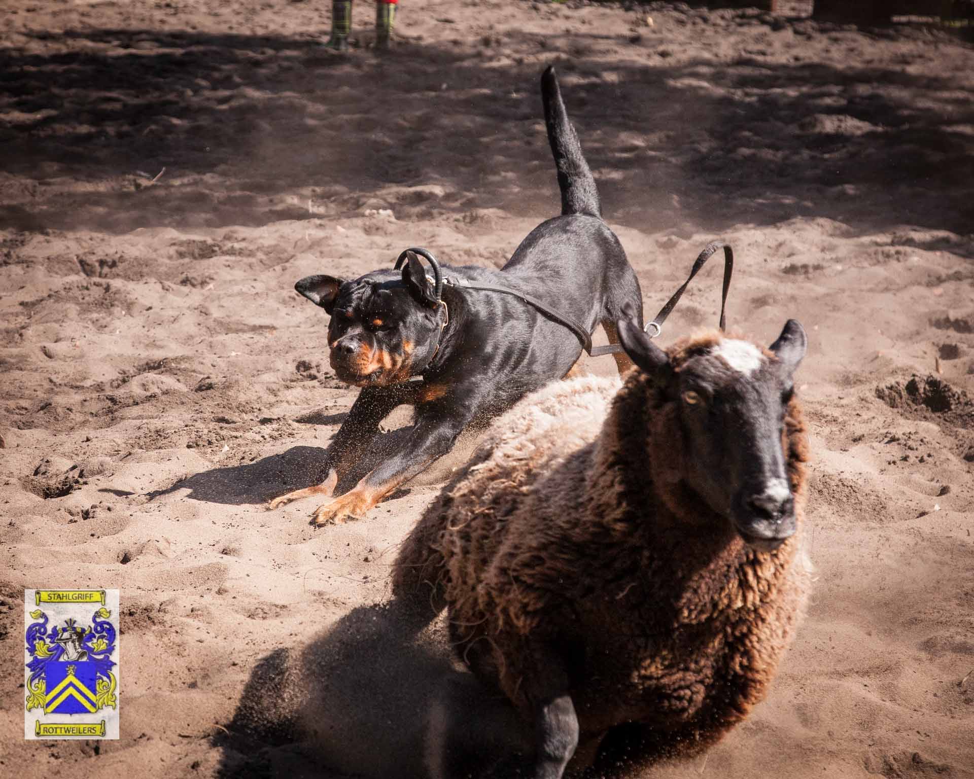 In Australia, dogs are used to manage stock all over the country. For the Rottweiler this tradition is somewhat lost, but surprisingly the breed has not lost its innate ability and instinct to herd, this instinct remains very strong. To this end we at Stahlgriff are very pleased that we can participate with our dogs in this ANKC sanctioned sport. Not only can our dogs benefit from the mental and physical activity but it also allows us to evaluate the robustness and health (both physical and mental) of our bloodlines.
